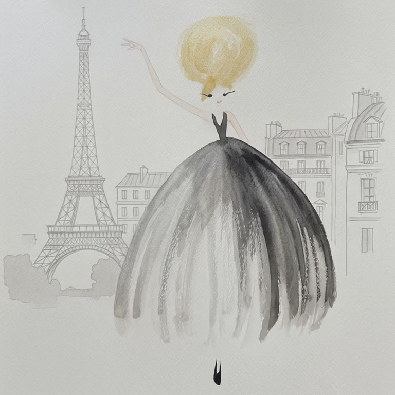 DOLLY Sunny in Paris Black Tutu Dress Watercolor Art Print on Canvas