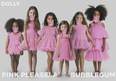 Use this chart as a guide. If in between sizes go up a size. DOLLY items run true to size and many are stretchy or elastic. Depending on style, pattern, children growth and bodies being different individually items may run bigger or smaller. Age is indicative. For printed merch Tees & Hoodies use the chart in the product description.