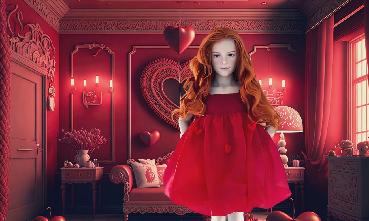 DOLLY WORLD HEART BALLOON ORGANZA DRESS WITH COTTON BODY red