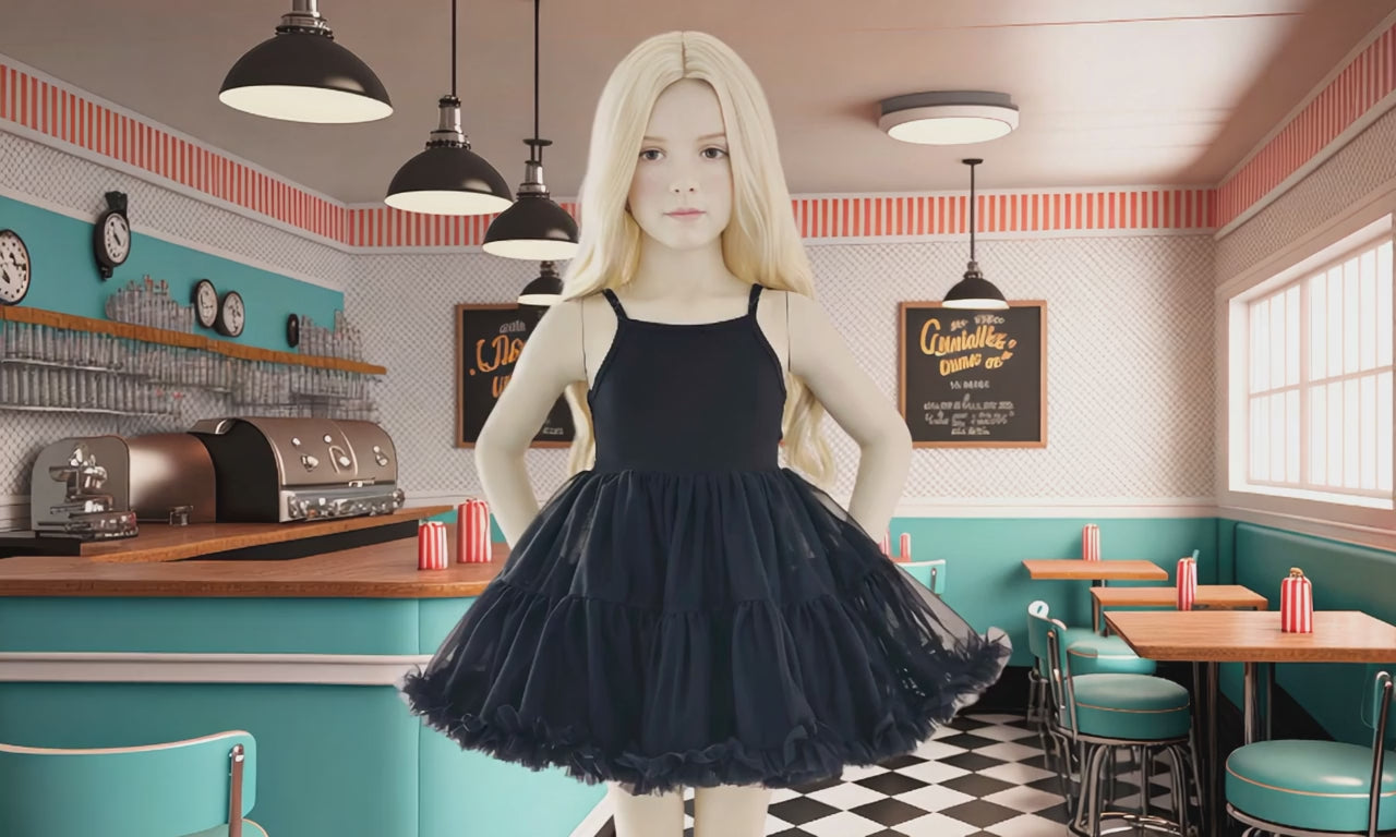DOLLY’s latest musthave: Petti Spaghetti tutu dress. A new style of pettidress with spaghetti straps. Made from our famous soft chiffon fabric and a comfortable stretch cotton bodice. You have to feel it to believe it. Many layers and ruffles create a fluffy, full silhouette and is simply stunning and comfortable to wear.