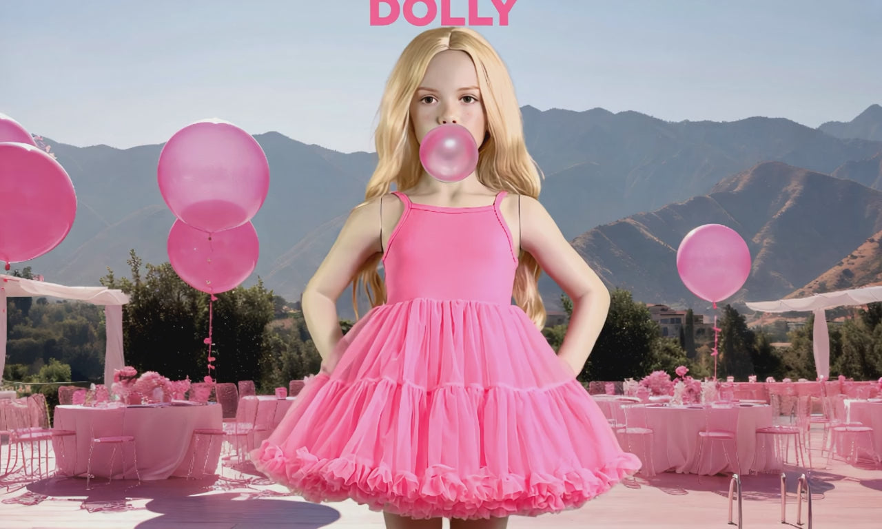 DOLLY’s latest musthave: Petti Spaghetti tutu dress. A new style of pettidress with spaghetti straps. Made from our famous soft chiffon fabric and a comfortable stretch cotton bodice. You have to feel it to believe it. Many layers and ruffles create a fluffy, full silhouette and is simply stunning and comfortable to wear.