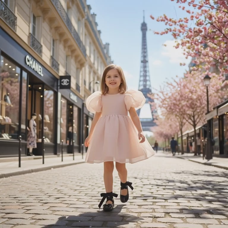 DOLLY V-BACK PUFF SLEEVE ORGANZA TUTU DRESS ballet slipper pink
