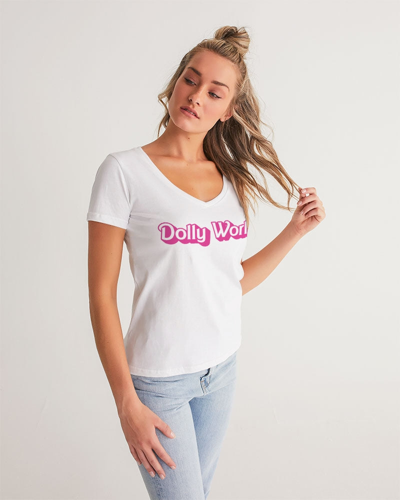DOLLY WORLD MANNEQUIN BOW Women's V-Neck Tee
